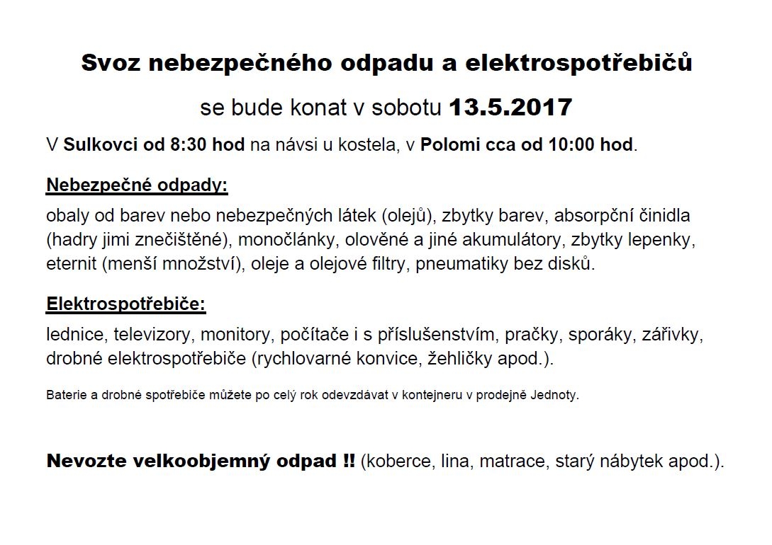 Svoz nebezpečného odpadu a elektrospotřebičů