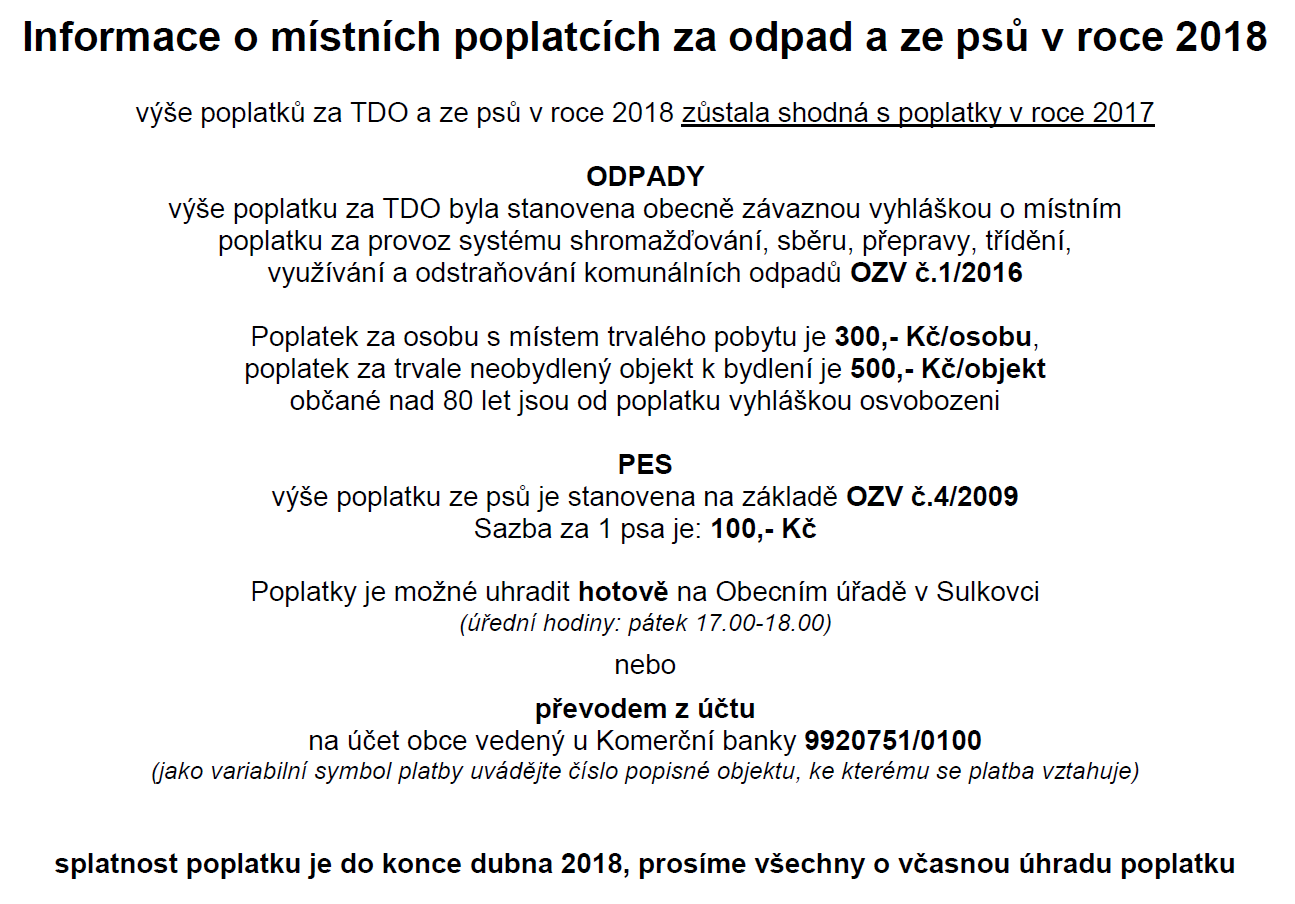 Informace k úhradě poplatků za TDO a za psy v roce 2018.