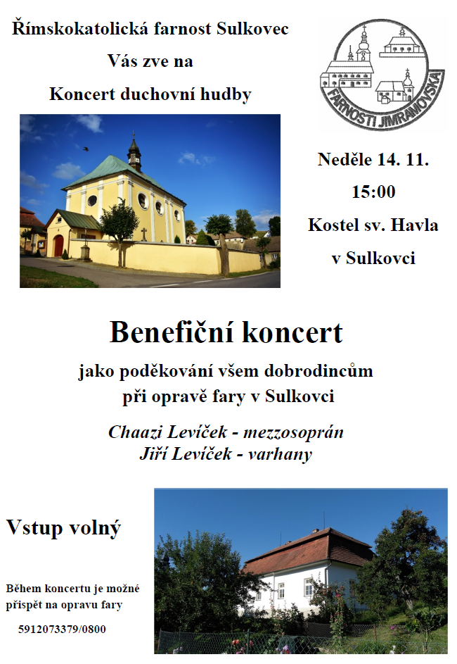 Benefiční koncert v kostele sv. Havla v Sulkovci, jako poděkování všem dobrodincům při oprave fary v Sulkovci.
