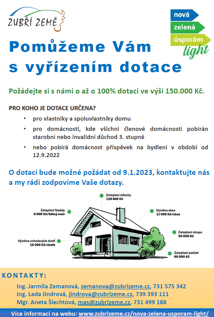 Informace k dotacím pro snížení energetické náročnosti budov ve vlastnictví starobních nebo invalidních důchodců a osob pobírajících příspěvek na bydlení.