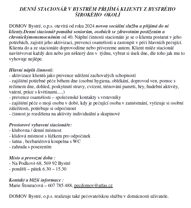Nová sociální služba DOMOV Bystré, o.p.s.